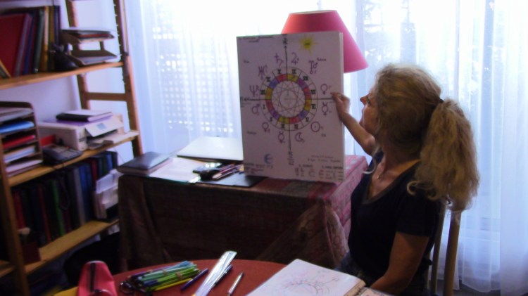 La puissance de son « Ecole de Sagesse » est d’abord de proposer une méthode de travail originale, artisanale et colorée pour entrer dans un thème natal, donner du relief à ses nombreuses composantes et permettre ainsi de mieux l’interpréter. C’est ensuite d’avoir mis en place une technique inédite, « les degrés-réflexes »©, afin de ‘baliser’ le temps et repérer les périodes fortes de notre passé, de notre présent et de notre avenir ; je les ai intégrés à ma propre pratique.